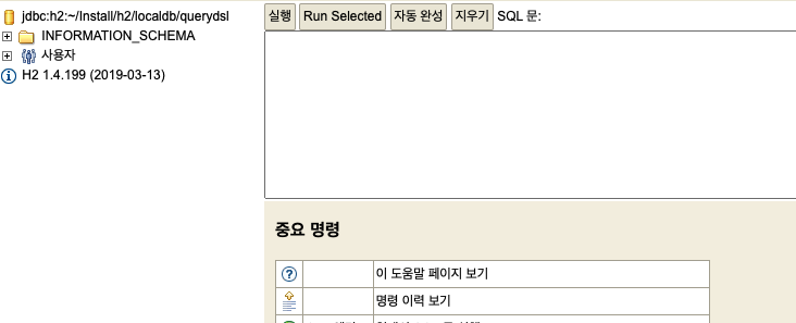 실행시키면 H2 데이터베이스를 이용할 수 있습니다
