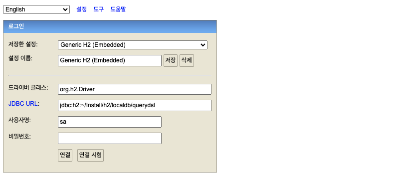 url: jdbc:h2:tcp://localhost/~/Install/h2/localdb/querydsl